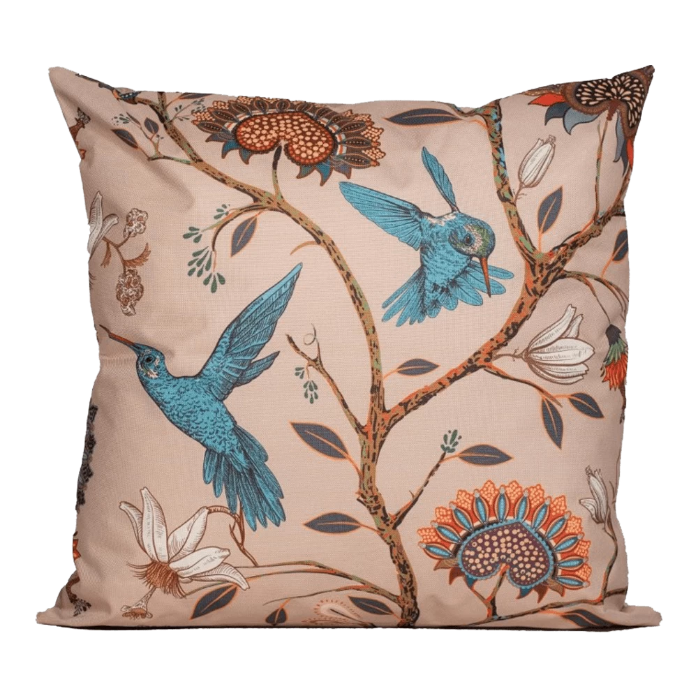 Buitenkussen Blauwe Vogel En Bloemen 60x60cm – Tuinkussen