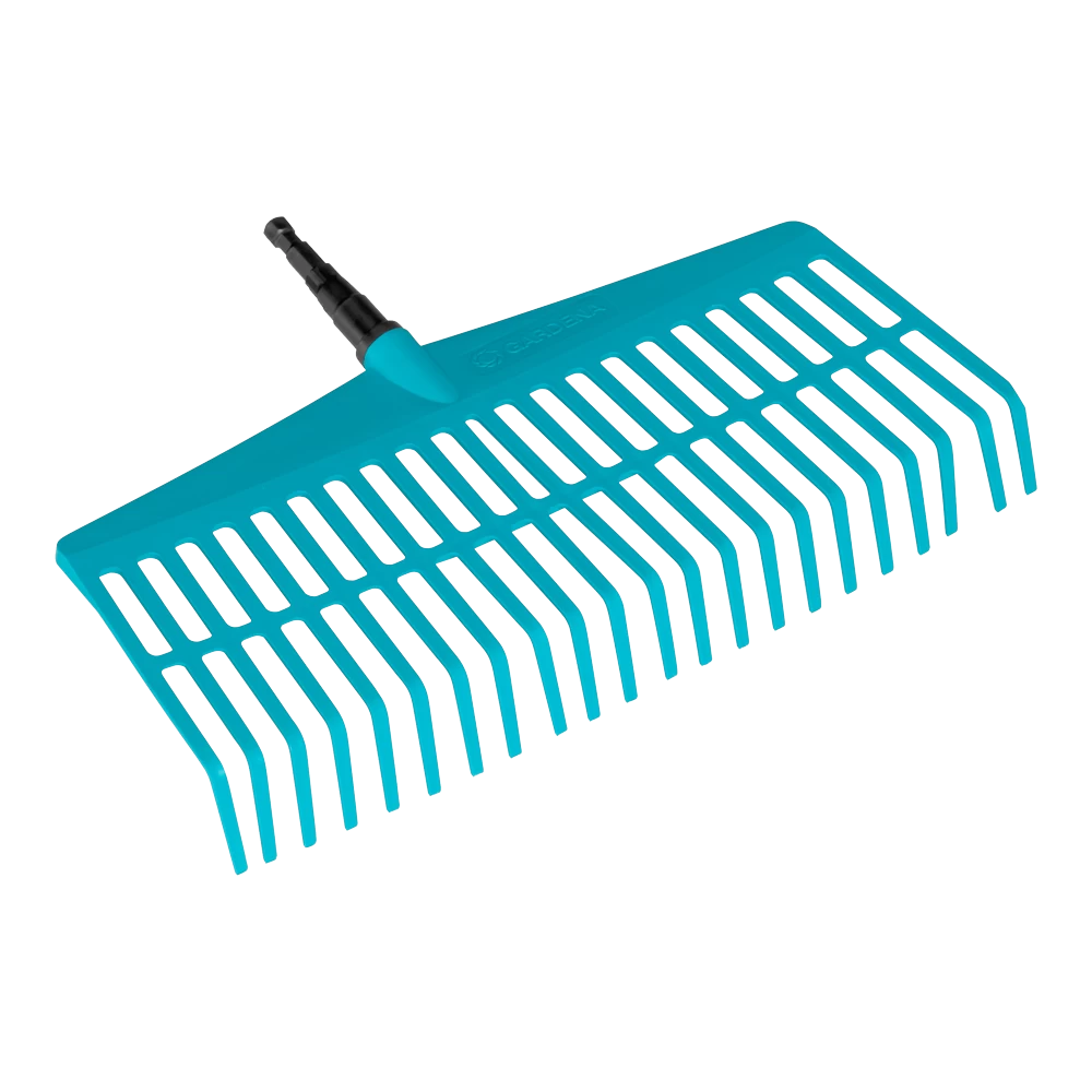 De GARDENA combisystem-gazonhark is uitstekend geschikt voor het bijeenharken van blad, grasresten, verticuteermateriaal en ander tuinafval. De stevige tanden van hoogwaardige kunststof, die zijn opgesteld over een werkbreedte van 43 cm, garanderen een eenvoudig en praktisch gebruik, waarbij het gazon wordt ontzien. De gazonhark is geschikt voor alle stelen van het GARDENA combisystem, waarbij GARDENA een steellengte van 130 cm adviseert, afhankelijk van uw lichaamslengte.