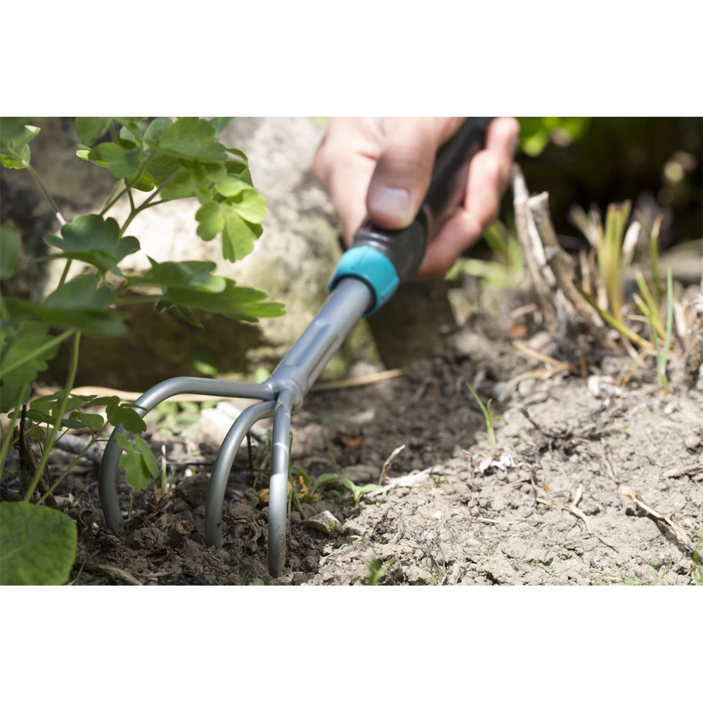 De GARDENA handkrabber is ideaal om grond los te maken en te beluchten zonder wortels te beschadigen. De ergonomische handgreep met zacht component past perfect in de hand en de hoek aan het einde voorkomt wegglijden. De handkrabber heeft een werkbreedte van 7 cm. Het blad is gemaakt van hoogwaardig staal en voorzien van een duroblast coating voor een lange levensduur.