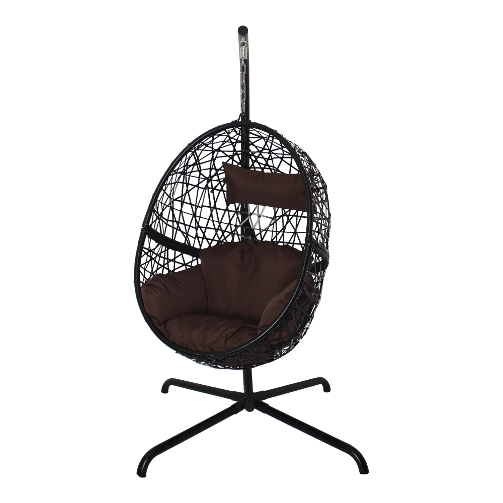 De hangstoel Laos heeft een zwart frame en de het kussen is bruin van kleur. De hangstoel is gemaakt van hoogwaardig Wicker en gepoedercoat Staal. De Hangstoelen zijn verkrijgbaar in verschillende kleur en modellen. Bestel eenvoudig en goedkoop een hangstoel bij Biezen of bezoek eens onze showroom!