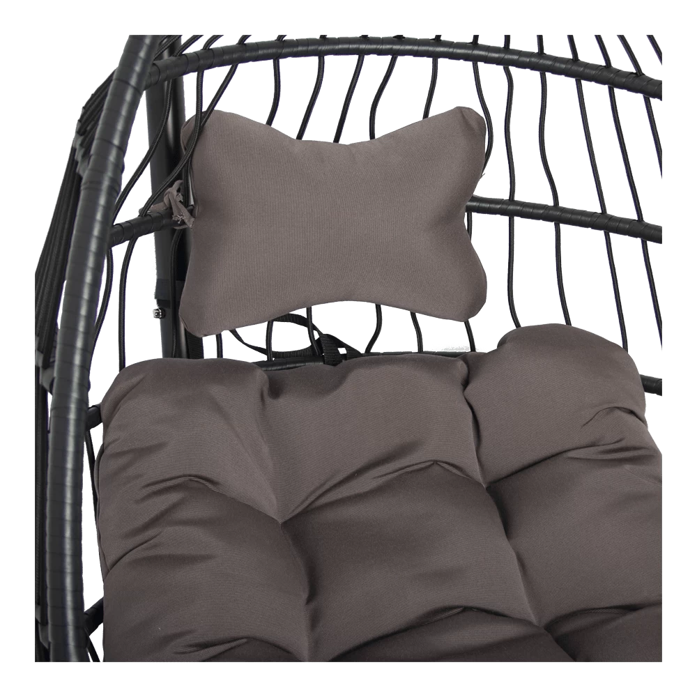 De hangstoel Norway heeft een zwart frame en het kussen heeft een bruine kleur. De hangstoel is gemaakt van hoogwaardig Olefin touw en gepoedercoat Staal. De Hangstoel Norway is inklapbaar en neemt hierdoor weinig ruimte inbeslag. De Hangstoelen zijn verkrijgbaar in verschillende kleur en modellen. Bestel eenvoudig en goedkoop een hangstoel bij Biezen of bezoek eens onze showroom!