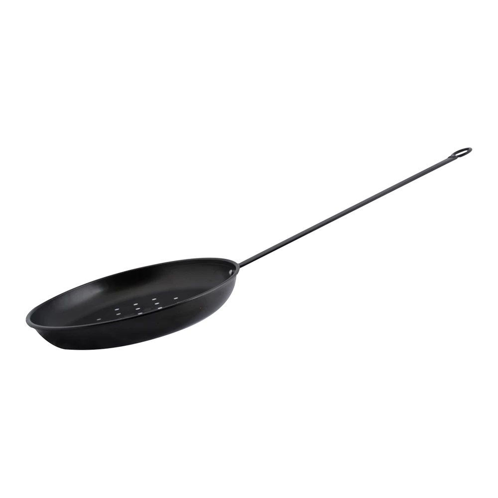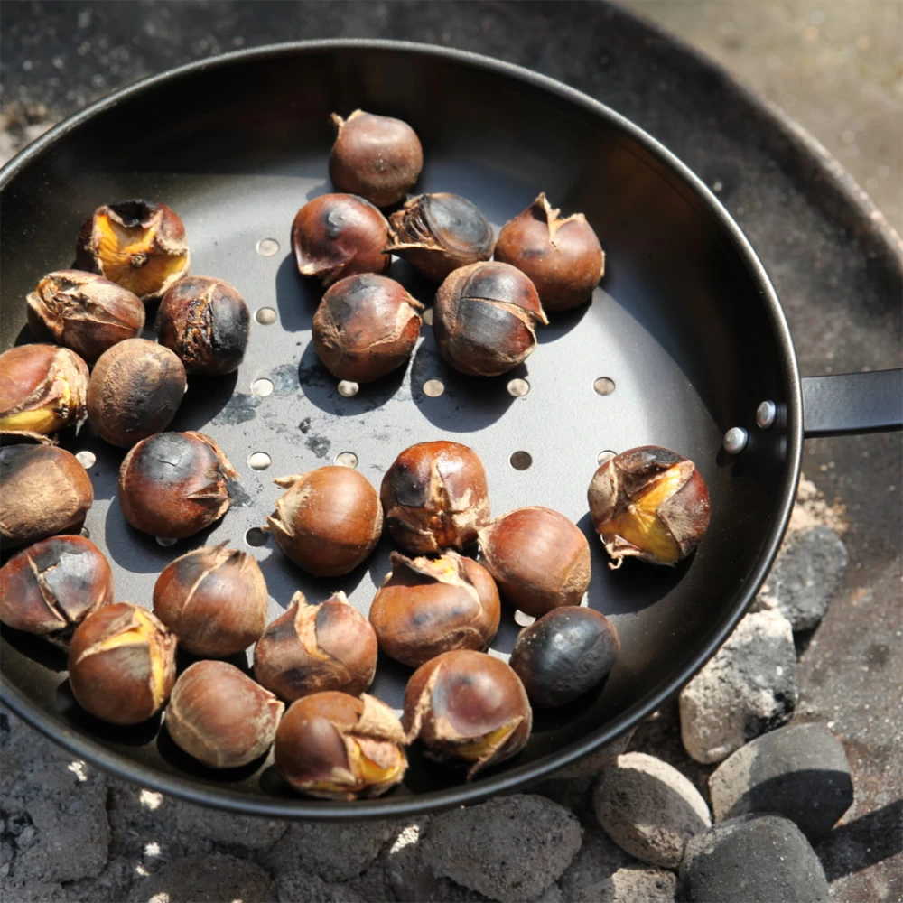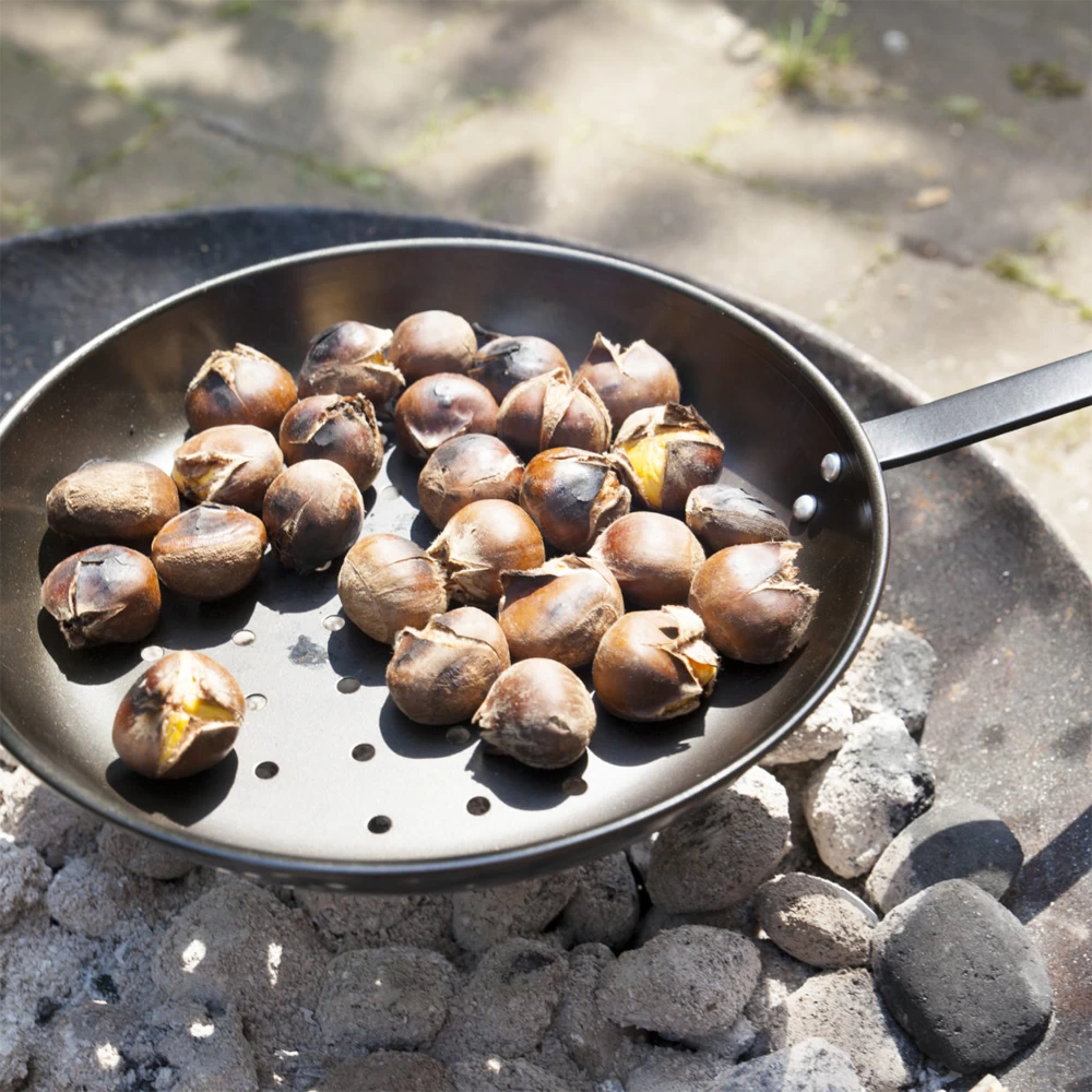 Rooster de heerlijkste kastanjes buiten op deze speciaal ontwikkelde pan. Dankzij de lange steel is deze pan uiterst geschikt voor open vuur, en biedt het een veilige afstand tot de vlammen. Eenvoudig op te hangen door middel van oog aan het uiteinde van de steel.