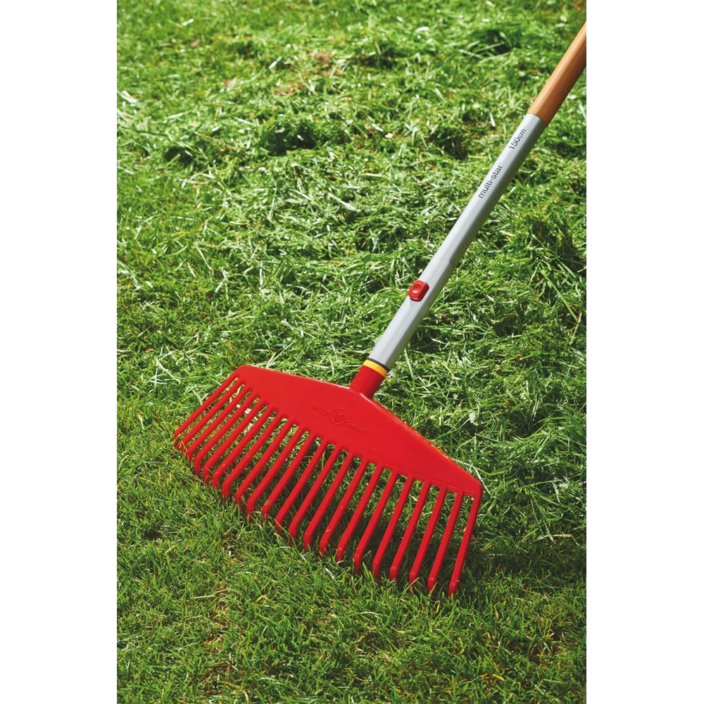 De WOLF-Garten multi-star multihark Ui-M is een bijzonder lichte elastische multi-bezem die geschikt is voor het reinigen van zaaibedden, tuin en gazon. De multi-hark heeft een werkbreedte van 42 cm en bestaat uit 21 robuuste kunststof tanden. De aanbevolen multi-star steel is een essenhouten steel te verkrijgen in een lengte van 140 cm (ZM 140), 150 cm (ZM 150) of 170 cm (ZM 170). 21 Robuuste, gebogen platte kunststof tanden.
