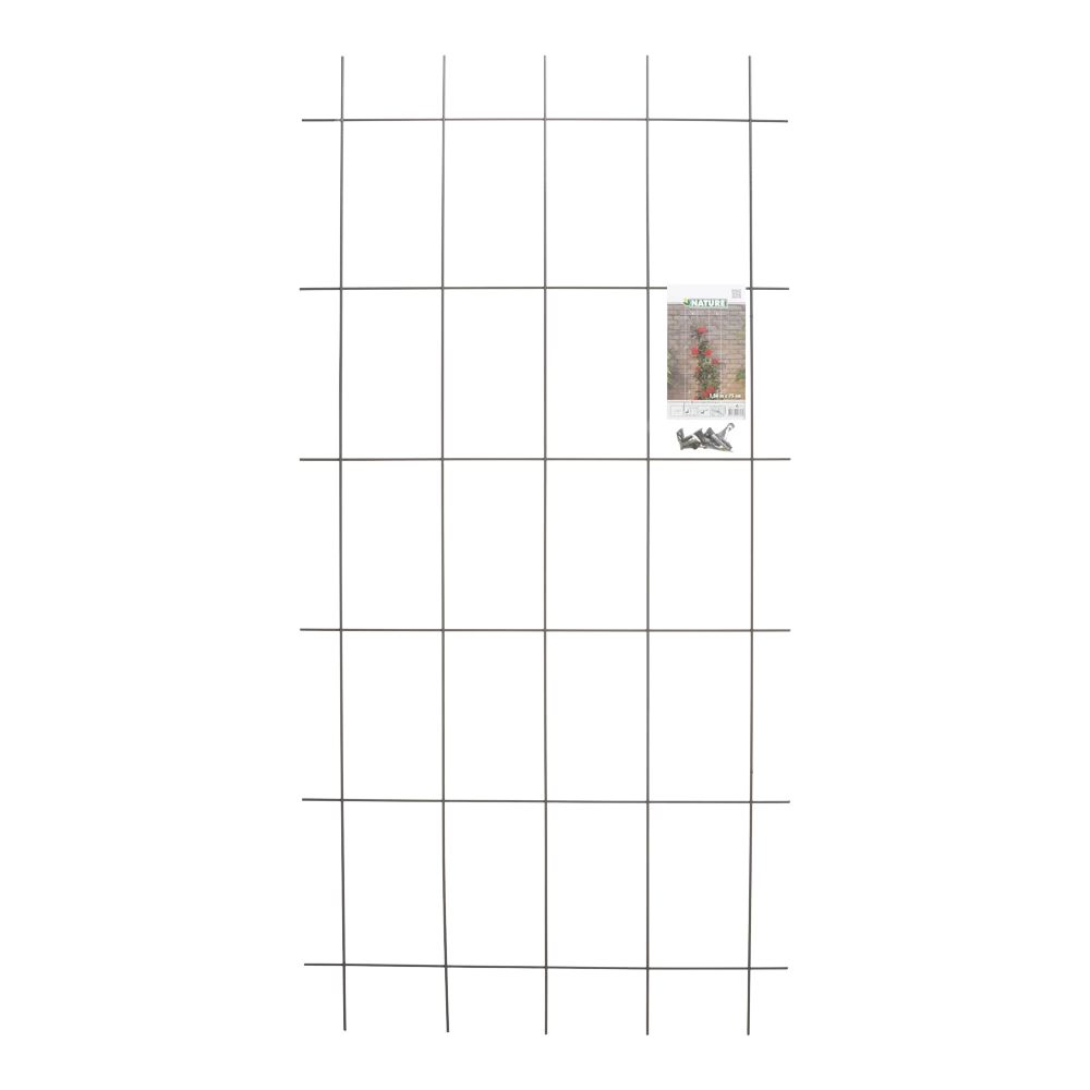 Decoratief rechthoekig metalen klimrek van Nature, gemaakt van grijs geplastificeerd verzinkt staal. Dit weerbestendige klimrek van duurzaam materiaal is geschikt voor het begeleiden en ondersteunen van klimplanten. Geleverd met bevestigingsset. Afmeting: H 145 x 72,5 cm.