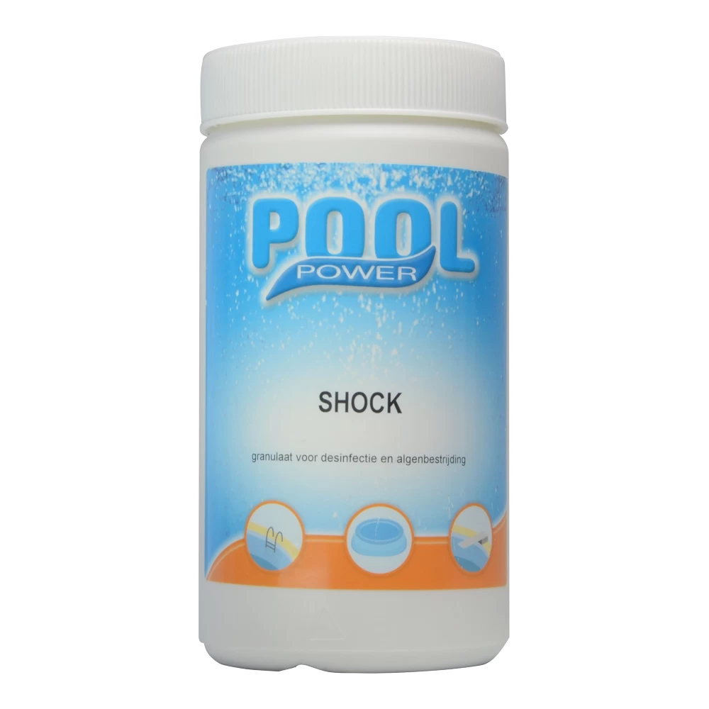 Pool Power Shock 55/G is een snel oplossend desinfectiemiddel in korrelvorm voor zwembaden. Toe te passen bij het opstarten en als extra chloordosering bij problemen als b.v. algengroei of rode wormpjes. Toelatingsnummer 11796 N. Nooit mengen met andere (zwembad) chemicaliën; altijd het product aan water toevoegen, nooit andersom. Bijzondere gevaren: oxiderend, bijtend. Verpakking van 1 kg. “Gebruik biociden veilig. Lees vóór het gebruik eerst het etiket en de productinformatie”