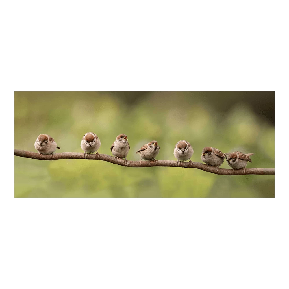 Tuinposter 7 Mussen Op Tak – 110x45cm