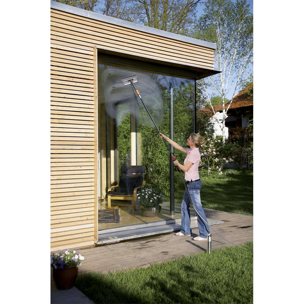 Met de GARDENA watersteel 150 kunt u alle accessoires van het Original GARDENA Cleansystem verlengen. De steel heeft een lengte van 150 cm en is gemaakt van hoogwaardig aluminium, waardoor de steel licht en stevig is. Dankzij de eenvoudige, stevige en veilige aansluittechnologie met schroefaansluiting kunnen alle accessoires van het Cleansystem eenvoudig op de steel worden aangesloten. De steel heeft een kunststof laag die prettig vasthoudt, krassen en slippen voorkomt en nooit koud aanvoelt. De hoeveelheid en druk van het water kunnen op de steel worden ingesteld. De watertoevoer is traploos instelbaar en kan worden vergrendeld. De praktische en breukvaste dispenser voor verzorgingsproducten van GARDENA (art. nr. 1680-20, 1682-20, 1684-20, 5730-20) is in de watersteel geïntegreerd. U kunt met schoon water werken en/of verzorgings- of reinigingsmiddelen toevoegen.
